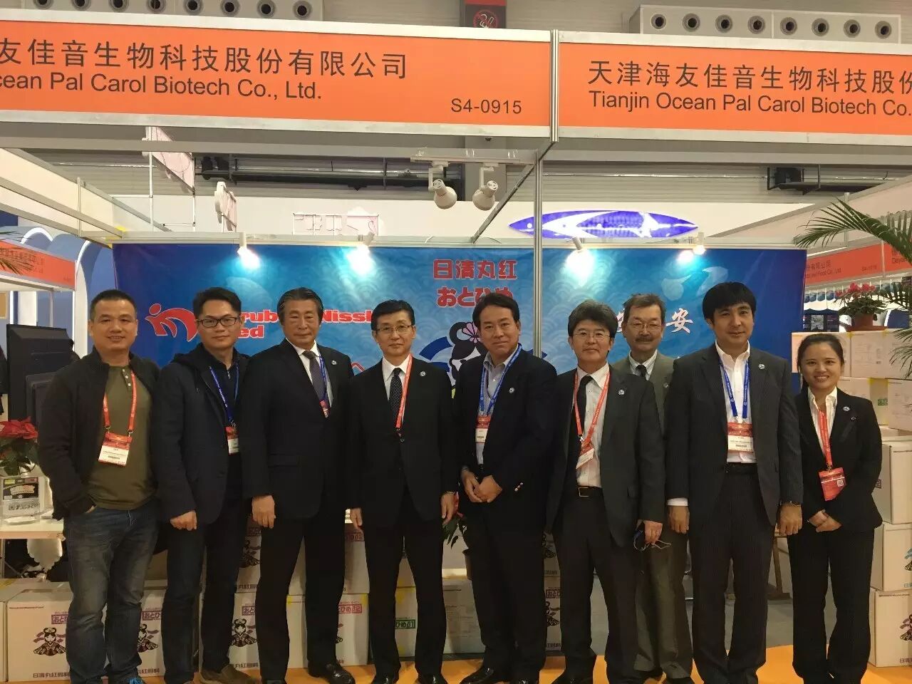 日清丸紅團(tuán)隊(duì)與水產(chǎn)前沿雜志的合影,其中,左三為岡田大介先生,左一為日清丸紅中國合作伙伴何家瑞先生,左五為青木邦夫先生
